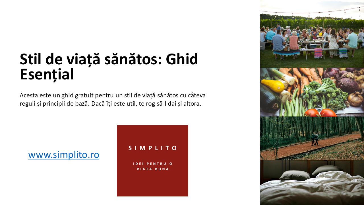 Am pregătit un ghid gratuit pentru un stil de viață sănătos cu câteva reguli și principii de bază. Îl puteți downloada de mai jos. Dacă vă este util, vă rog să-l dați și altora.