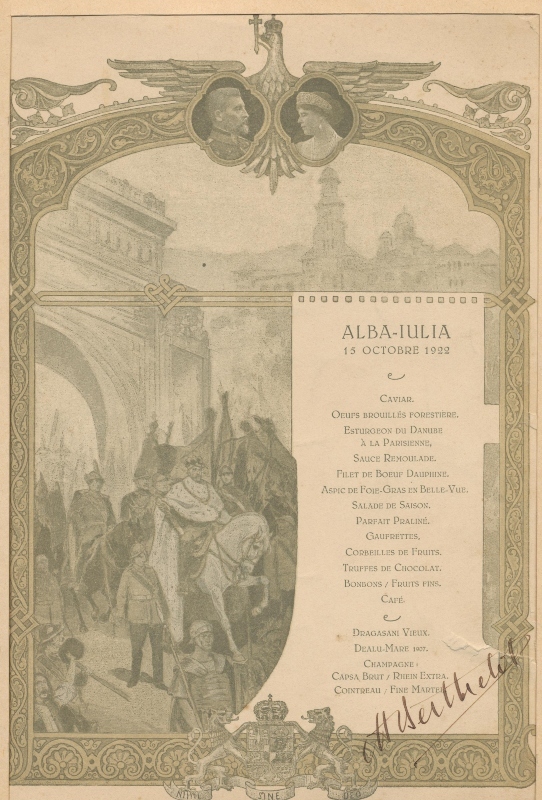 Meniul a fost pregătit de Casa Capșa și avizat de Generalul Berthelot.